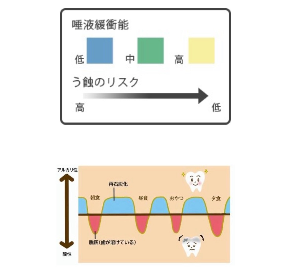 唾液は、むし歯菌や食物由来の酸を中和する機能=『緩衝能』(かんしょうのう)を持つこたが知られています。